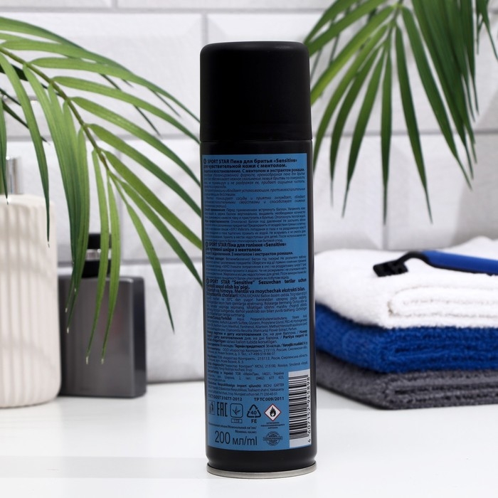 Пена для бритья Sport Star, Sensitive, для чувствительной кожи, с ментолом, 200 мл