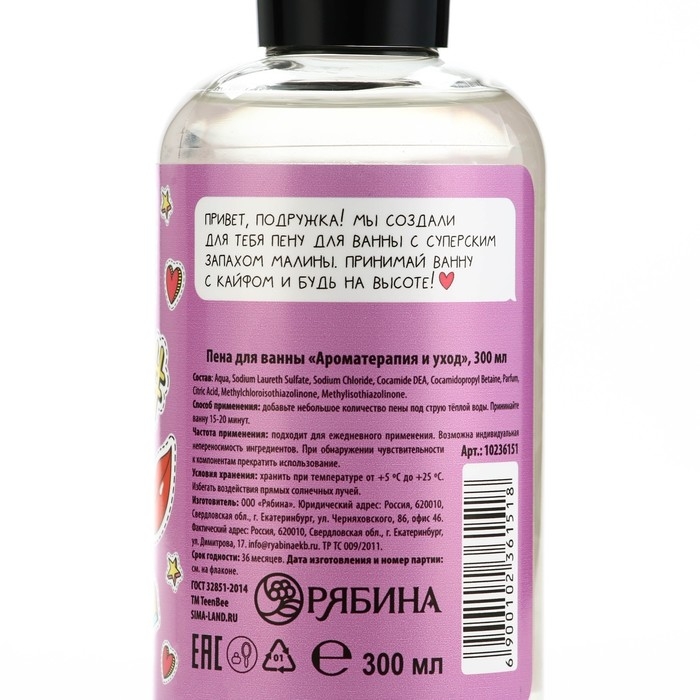 Пена для ванны, 300 мл, аромат малины, TeenBee