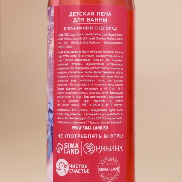 Пена для ванны детская «Новогоднее чудо», 100 мл, аромат клубничного снегопада, Новый Год