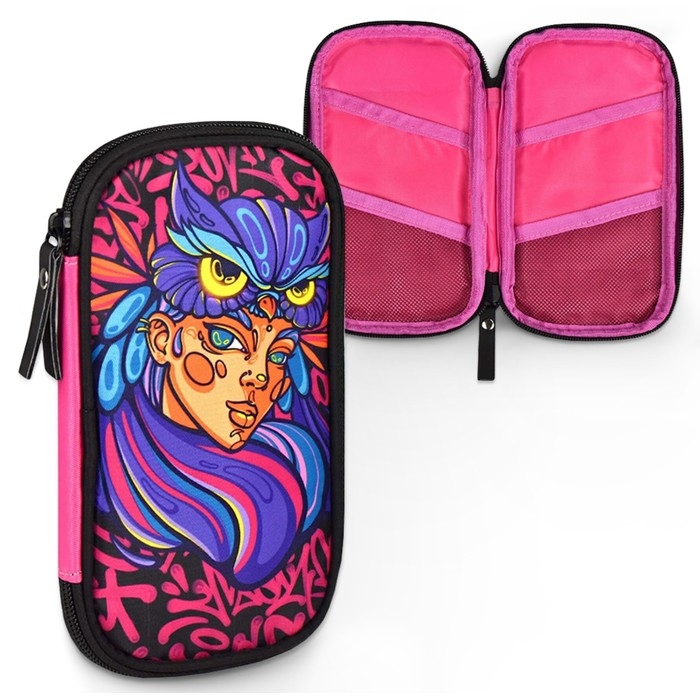 Пенал. ДЕВУШКА СОВА. Материал: полиэстер. Размер: 11x20x2 см. Количество отделений - 1. Застёжка - молния. Отделка: сублимационная печать. Особенности: внутренние карманы. Подклада: есть. Индивидуальная упаковка: ПЭТ-пакет.