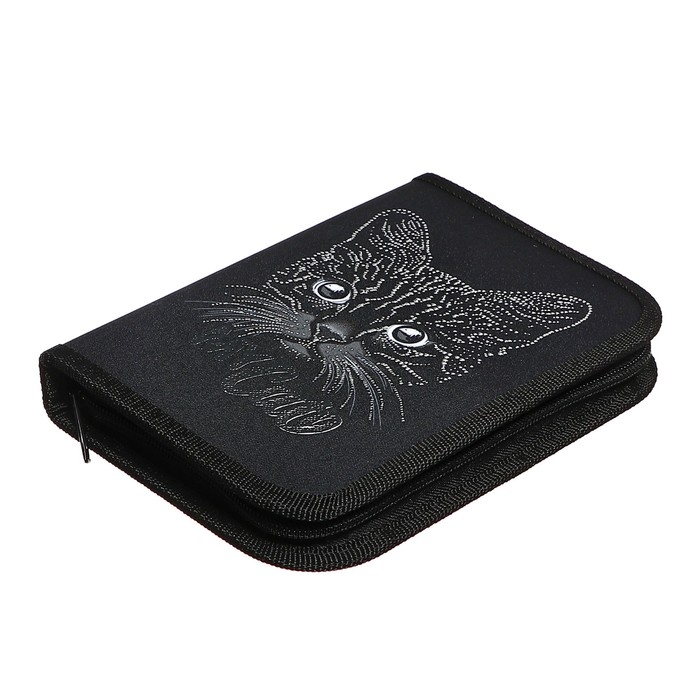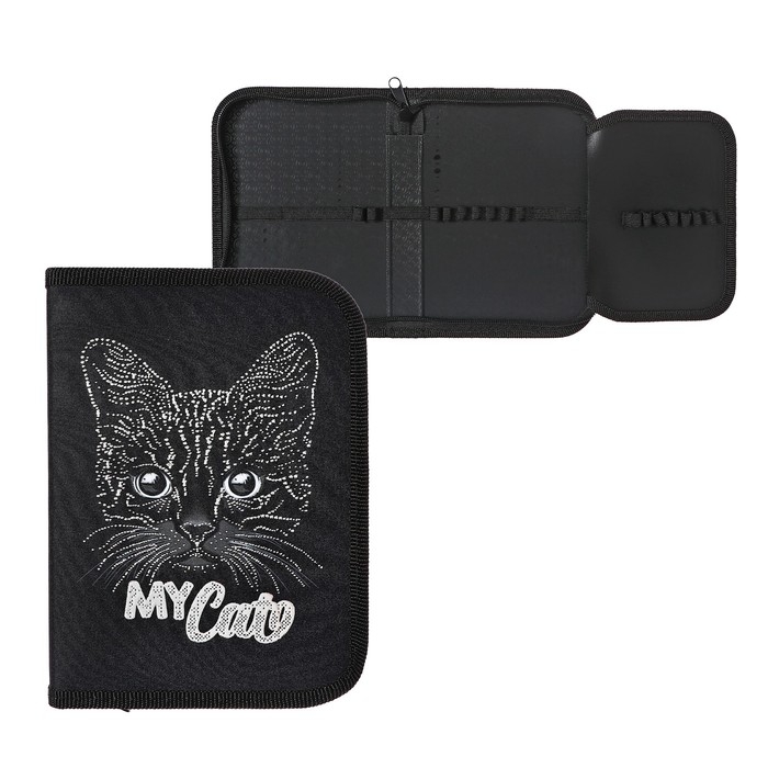 Пенал 1 секция 130 х 190 х 30 мм, с откидной планкой, ПКТ 07-22-19 "Мой кот" ламинированный картон, рисунок с эффектом металлика