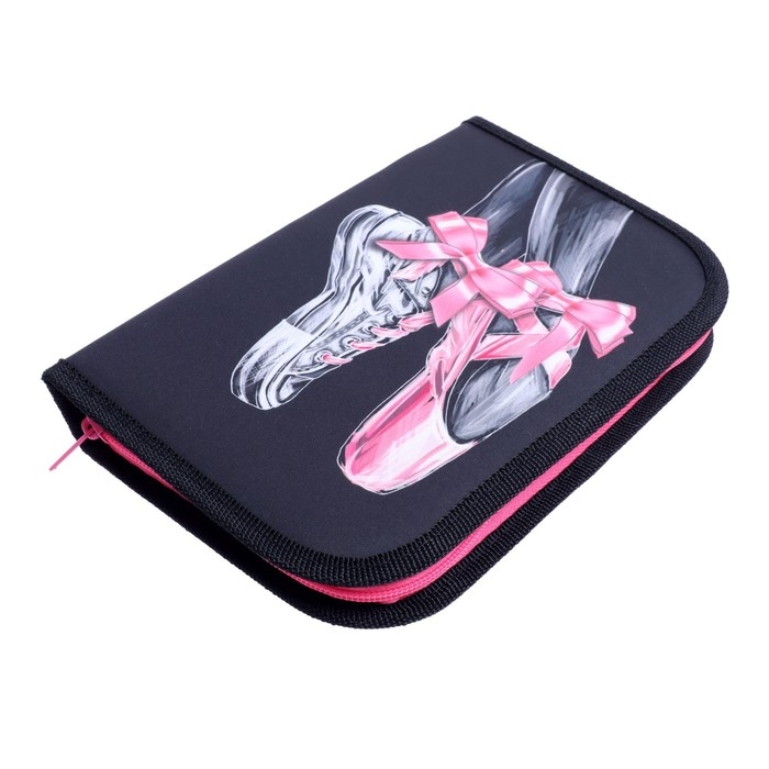 Пенал 1 секция, 130 х 210 х 40 мм, 2 откидные планки, тканевый, Calligrata TOP, Content "Пуанты"