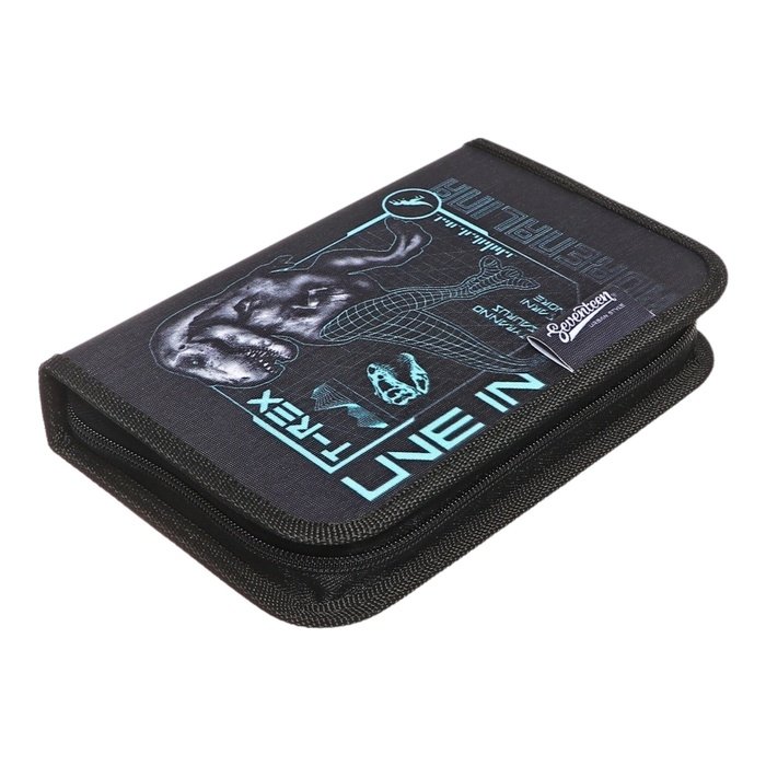 Пенал 1 секция, 130х200, откидная планка, ламинированный картон, для мальчика, чёрный, Seventeen