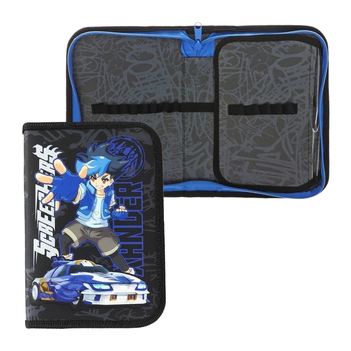 Пенал 1 секция, 130х200, откидная планка, ламинированный картон, для мальчика, синий/чёрный, Seventeen