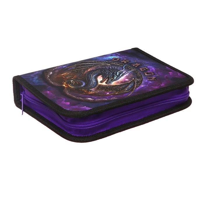 Пенал 1 секция, 140 х 200 х 40 мм, 2 откидные планки, текстильный, ПКТ 09-22-19 "Король драконов" (рисунок с эффектом металлика) 72208