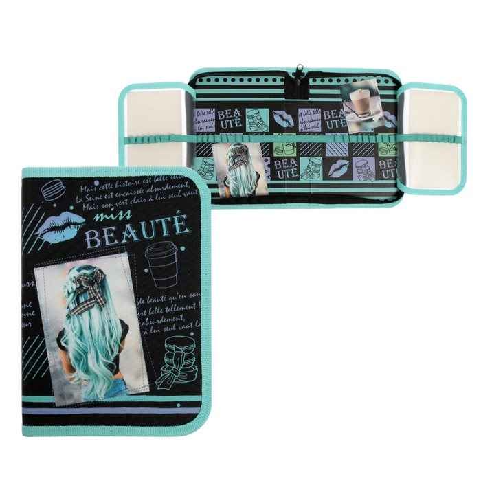 Пенал 1 секция, 140 х 200 х 40 мм, 2 откидные планки, тканевый, Hatber "Привет, красотка"