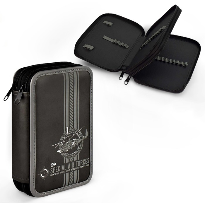 Пенал 2 секции, 123 х 198 мм, искусственная кожа, Феникс "Вертолет"