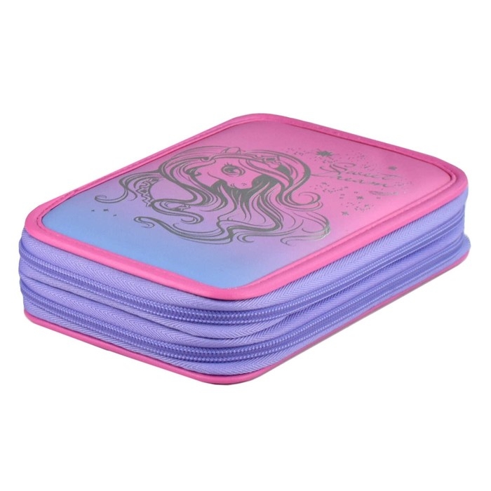Пенал 3 секции, вкладка внутри, 140 х 210 х 40 мм, тканевый, Calligrata TOP Block "Аниме"
