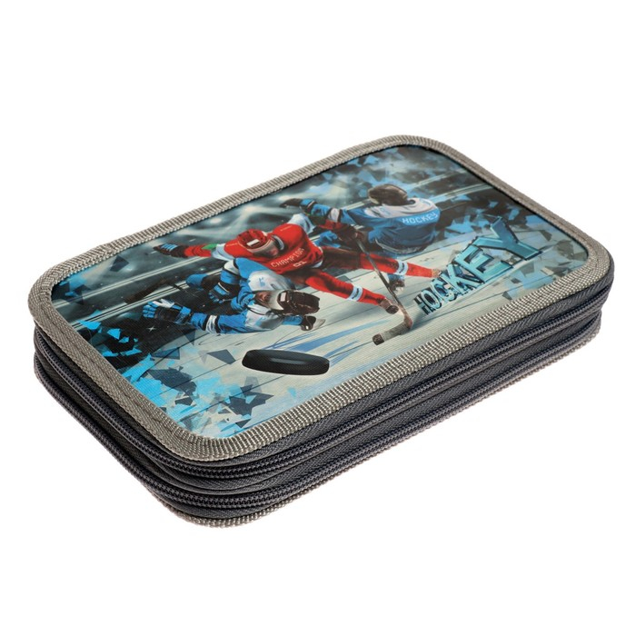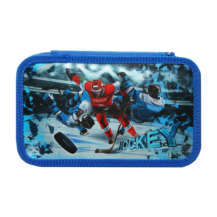 Пенал 2 секции, 125 х 205 х 40 мм, 8П26/2 Calligrata "Хоккеисты" (рисунок с эффектом металлика)