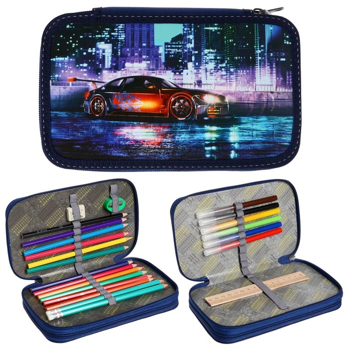 Пенал 2 секции, 125 х 205 мм, с наполнением 23 предмета, Calligrata "Драйв" ламинированный картон, 30П26/2/set