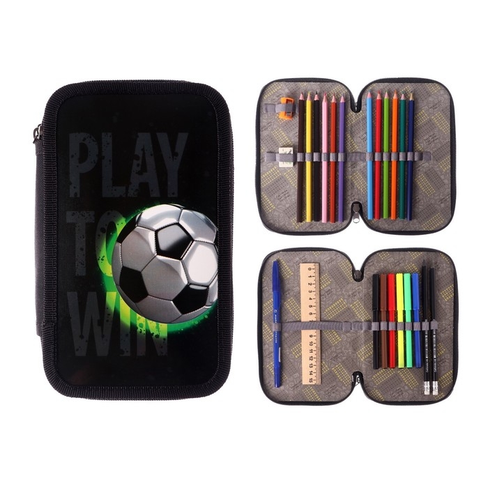 Пенал 2 секции, 125 х 205 мм, с наполнением 23 предмета, Calligrata "Футбол" ламинированный картон, 30П26/2/set