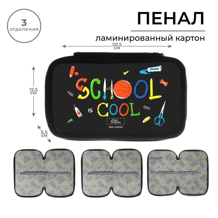 Пенал 3 секции, 125 х 205 х 55 мм, Calligrata 30П26/3 "School", ламинированный картон