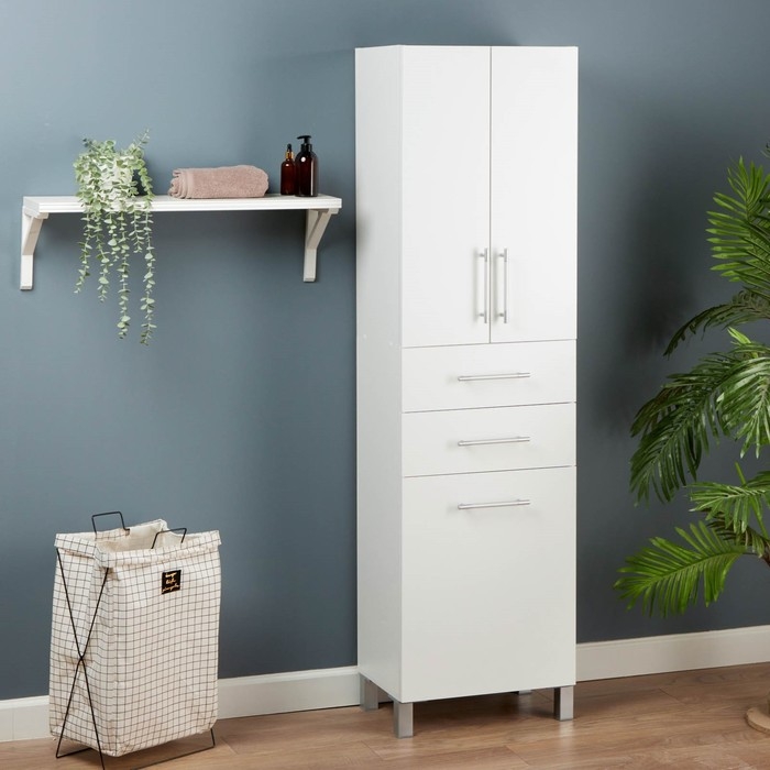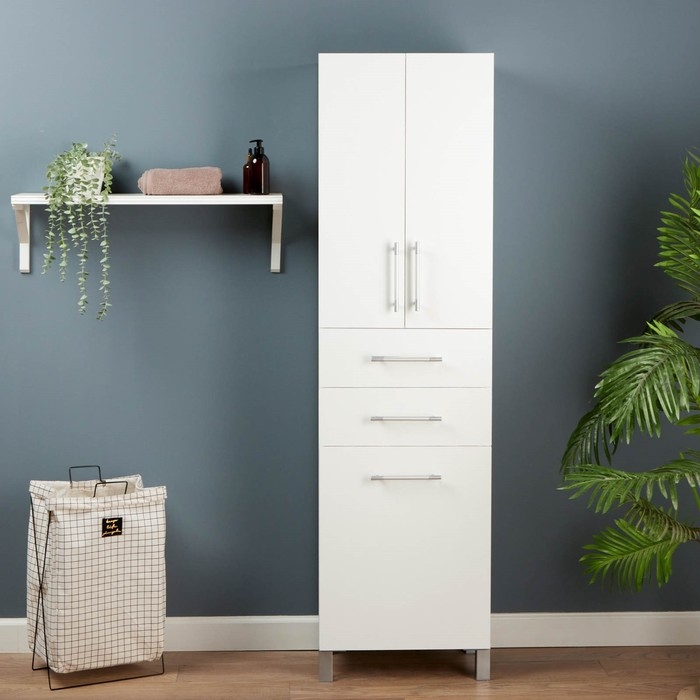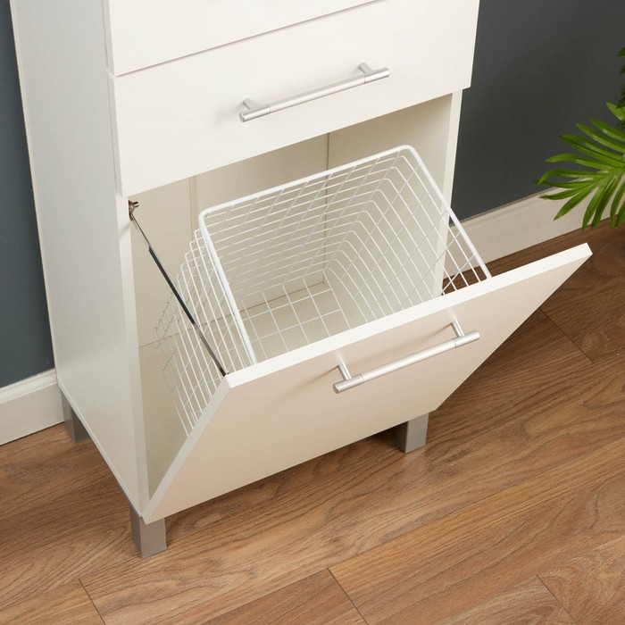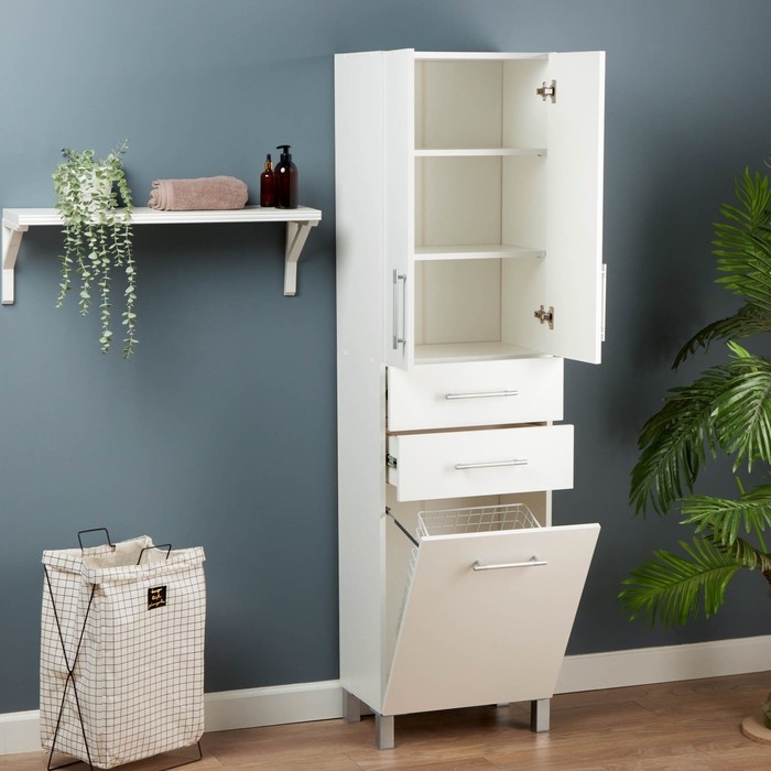 Пенал для ванной комнаты 500 с корзиной для белья, белый, 50 х 33 х 185 см
