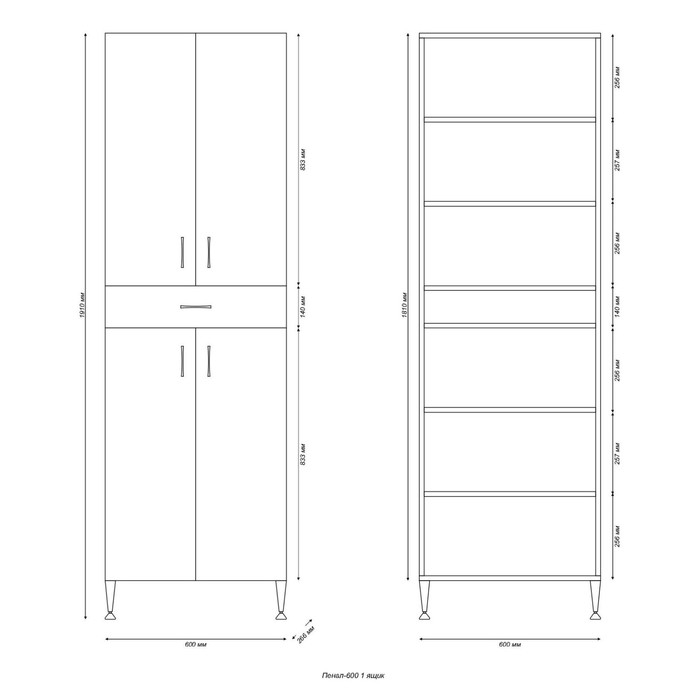 Пенал для ванной комнаты 60 с ящиком, 191 х 60 х 26,6 см
