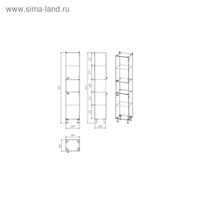 Пенал для ванной комнаты "Вега 3600" белый, 36 х 30 х 181 см