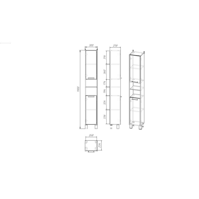 Пенал для ванной комнаты "Венге 30" белый, 30 х 25,5 х 190 см