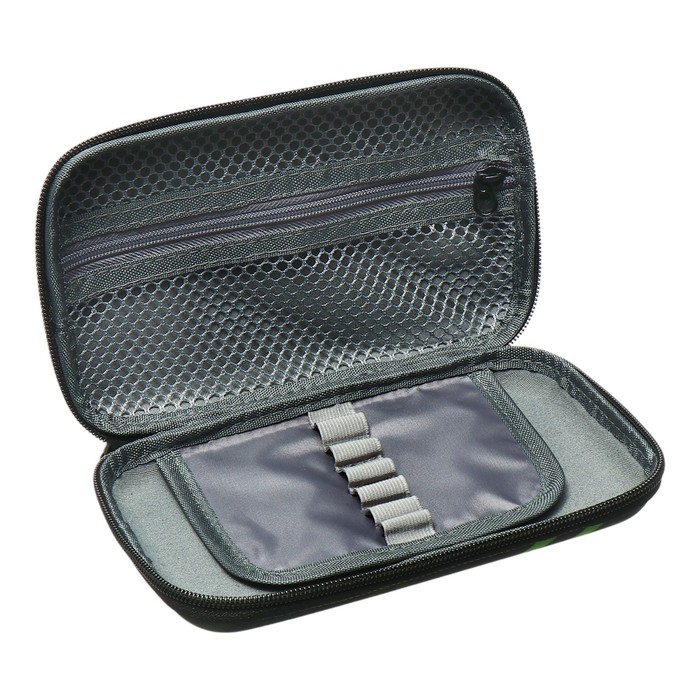 Пенал-футляр 95 х 205 х 45 мм, мягкий, текстильный, Calligrata, ПМК 27-20 Black, резинка на клапане, черный/зелёный