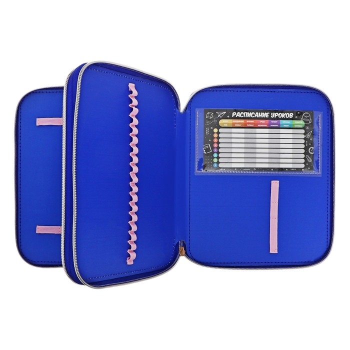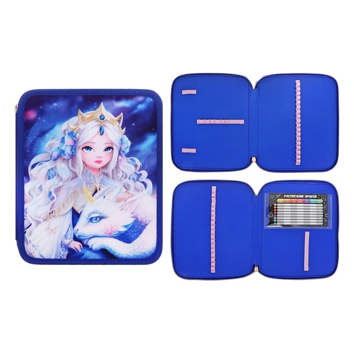 Пенал-органайзер для пишущих принадлежностей. ПРИНЦЕССА С ДРАКОНОМ. Материал: полиэстер. Комплектность: без наполнения. Размер: 19,5*23*5 см. Количество отделений - 2. Застёжка - молния. Материал собачки: металл. Форма собачки - брендированная собачка. Особенности: прозрачный карман из ПВХ, таблица для заполнения расписания уроков. Крепления для канцелярских принадлежностей: есть. Подклада: есть. Индивидуальная упаковка: ПЭТ-пакет.