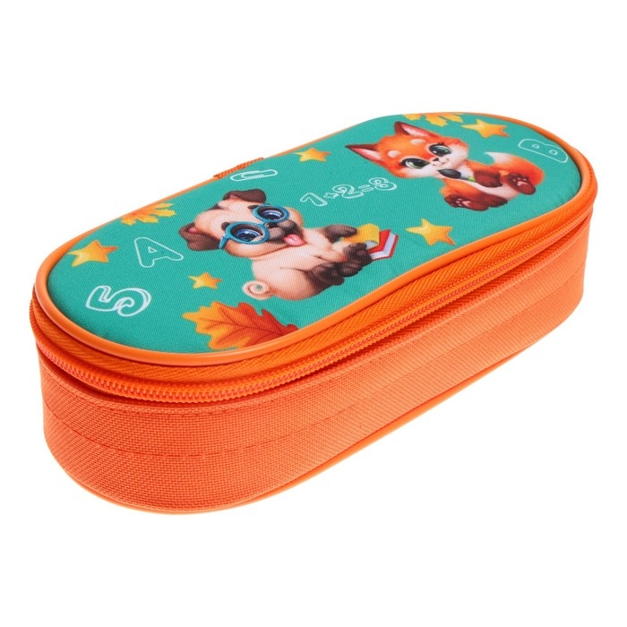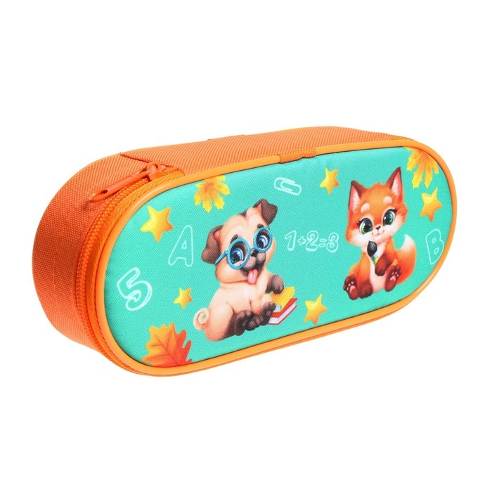 Пенал-футляр 95 х 205 х 45 мм, мягкий, текстильный, Calligrata, ПМК 27-20 резинка на клапане,"Зверята"