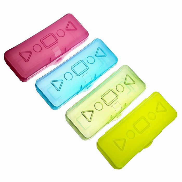 Пенал-футляр Calligrata "Школьный", 80 х 205 х 38 мм, полупрозрачный. пластиковый, микс