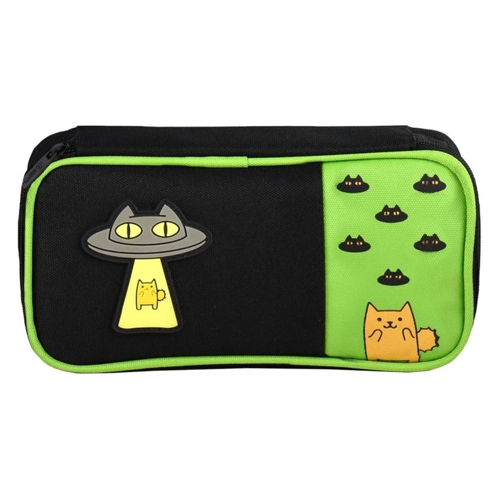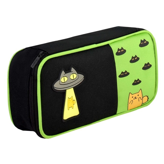 Пенал-футляр мягкий 20 х 100 х 45 мм, Феникс "Коты" чёрный/зелёный 61326