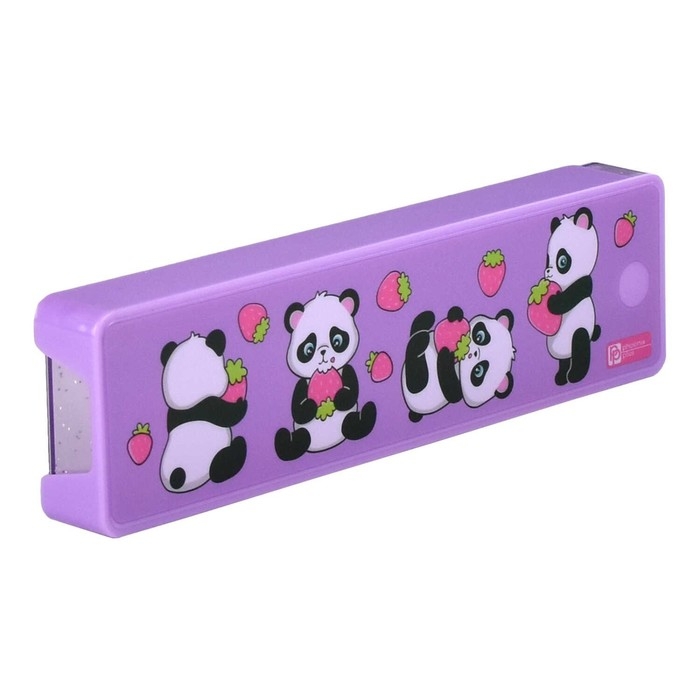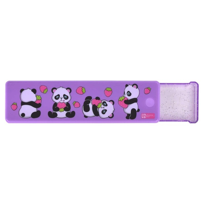 Пенал. ПАНДОЧКИ. Материал: АБС-пластик, полистирол, полиэтилентерефталат. Комплектность: без наполнения. Размер: 20х5.5х2.2 см. Количество отделений - 1. Отделка: УФ-печать, полноцветный дизайн. Особенности: выдвижной механизм, дно из пластика с вкраплением глиттера. Крепления для канцелярских принадлежностей: нет. Индивидуальная упаковка: ПЭТ-пакет.