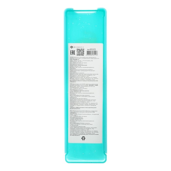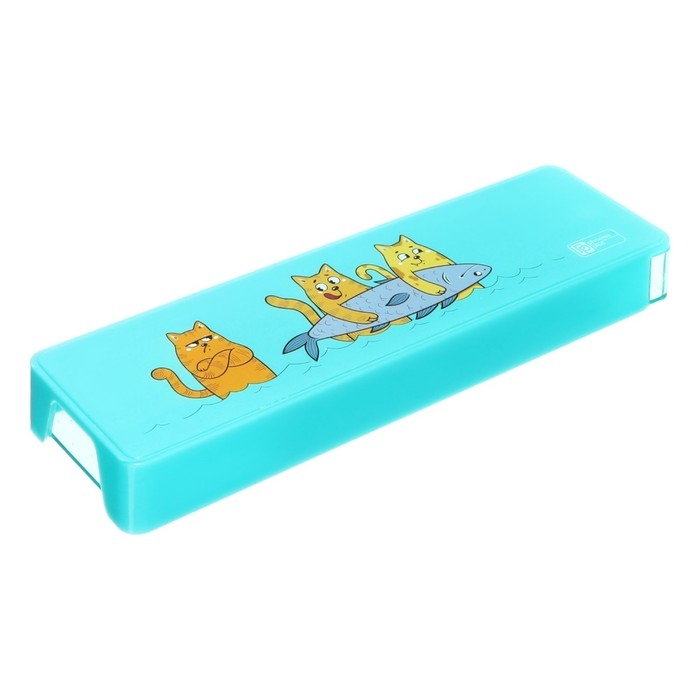 Пенал-футляр пластиковый 55 х 200 х 22 мм, Феникс "Три кота", для девочки, бирюзовый