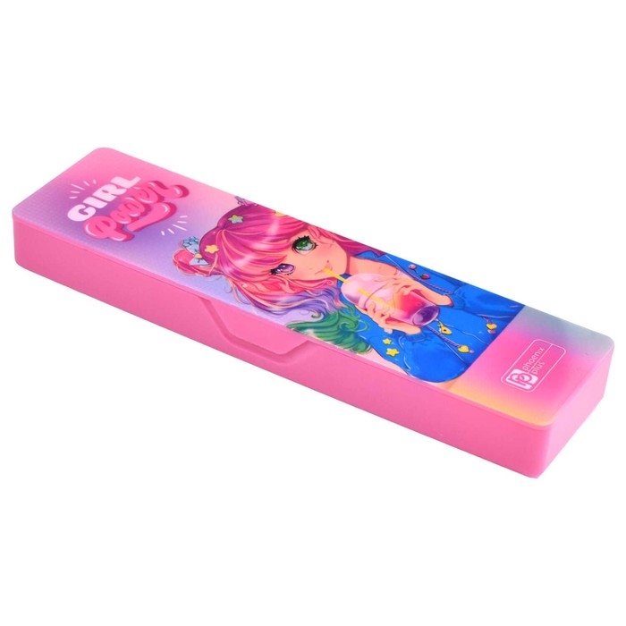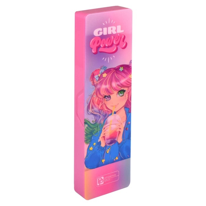 Пенал-футляр пластиковый 55 х 200 х 25 мм, Феникс "Розовая девочка", для девочки, розовый
