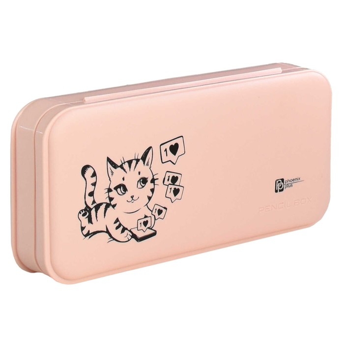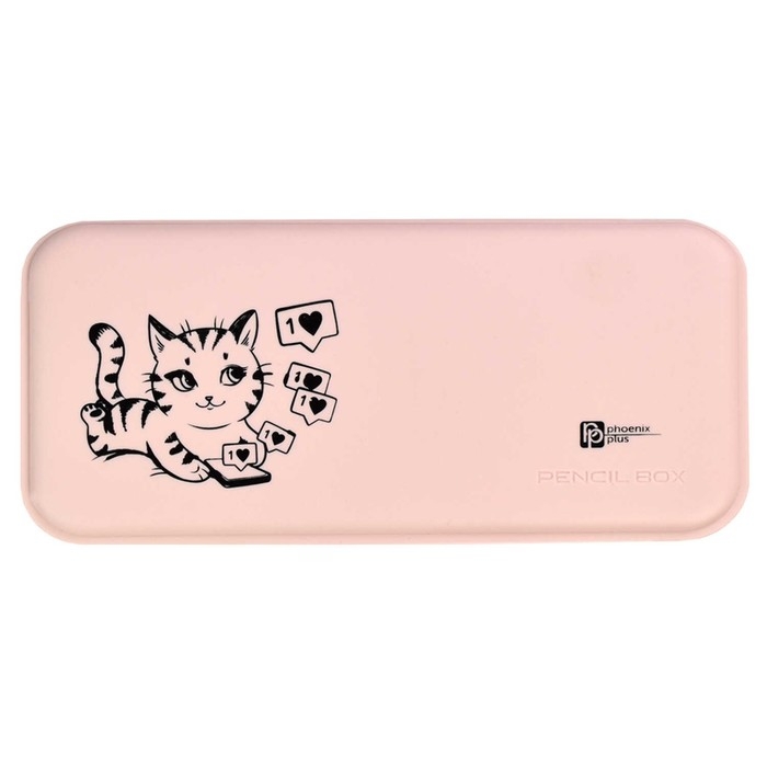 Пенал-футляр пластиковый 90 х 204 х 28 мм, Феникс "Кот с книжкой" розовый 61988