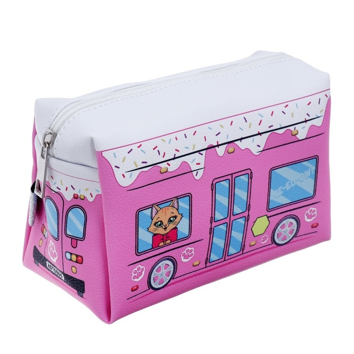 Пенал мягкий, 1 отделение, 100 х 180 х 80 мм, объёмный "Автобус с котятами", розовый