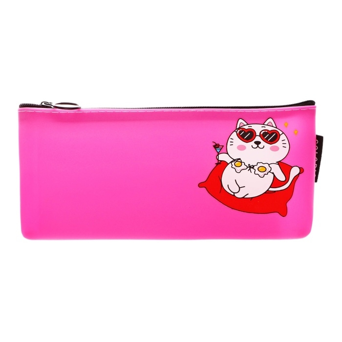 Пенал мягкий 1 отделение, 80 х 190 х 30 мм, кожзам зеркальный "Живи, наслаждайся, люби" розовый