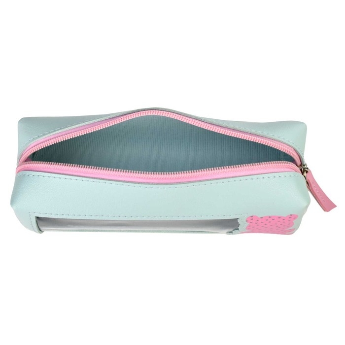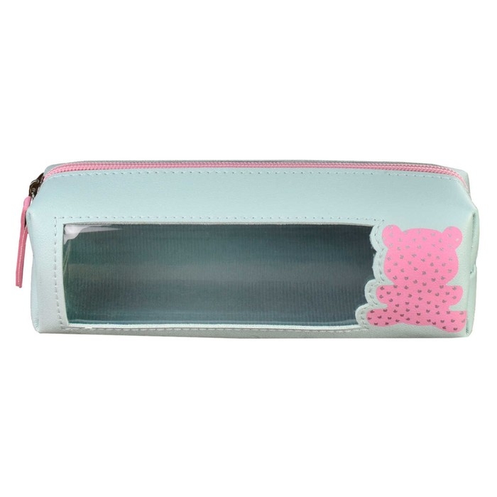 Пенал мягкий, 1 отделение, 55 х 195 х 60 мм, объёмный, искусственная кожа, с окном, Феникс ПВХ "Мишка" зелёный/розовый 61342