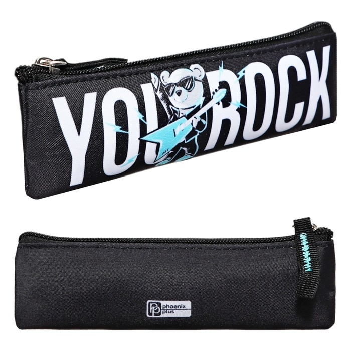 Пенал мягкий, 1 отделение, 60 х 200 мм, плоский, Феникс "Рок" чёрный 65313
