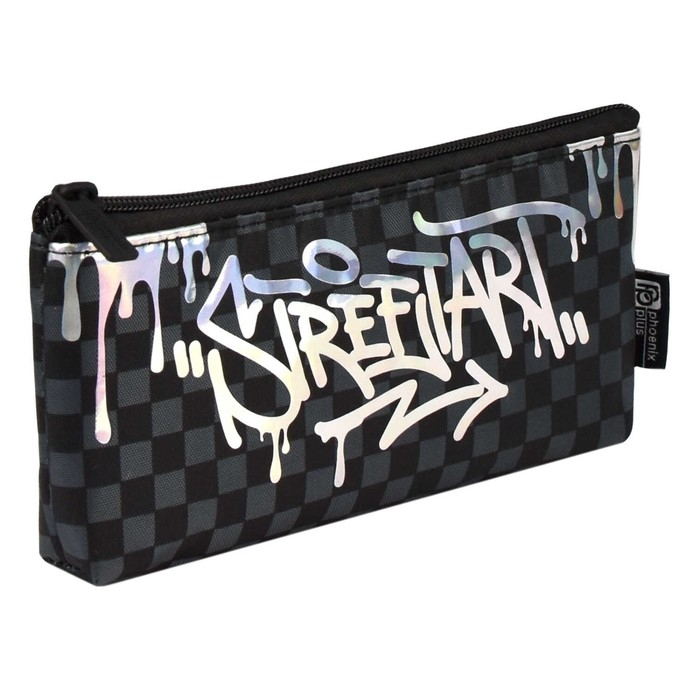 Пенал мягкий, 1 отделение, 90 х 190 х 15 мм, объёмный, Феникс "Панк" серый 64963