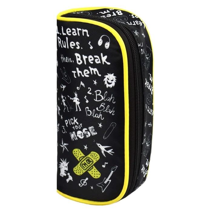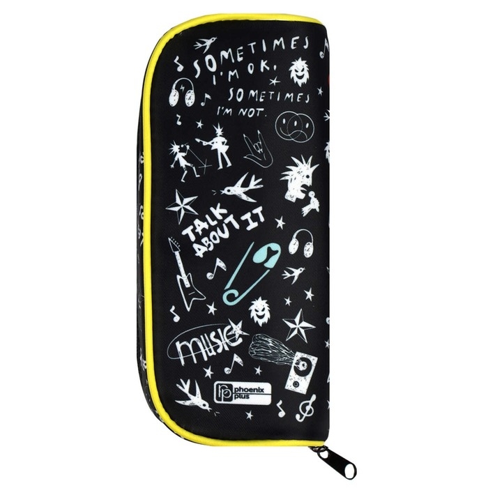 Пенал мягкий, 1 отделение, 90 х 205 х 55 мм, объёмный, Феникс "Панк" чёрный/жёлтый 65705