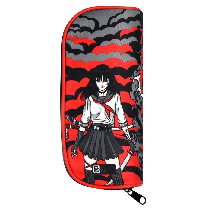 Пенал мягкий, 1 отделение, 90 х 205 х 55 мм, объёмный, Феникс "Танец с катаной" чёрный/красный 65703