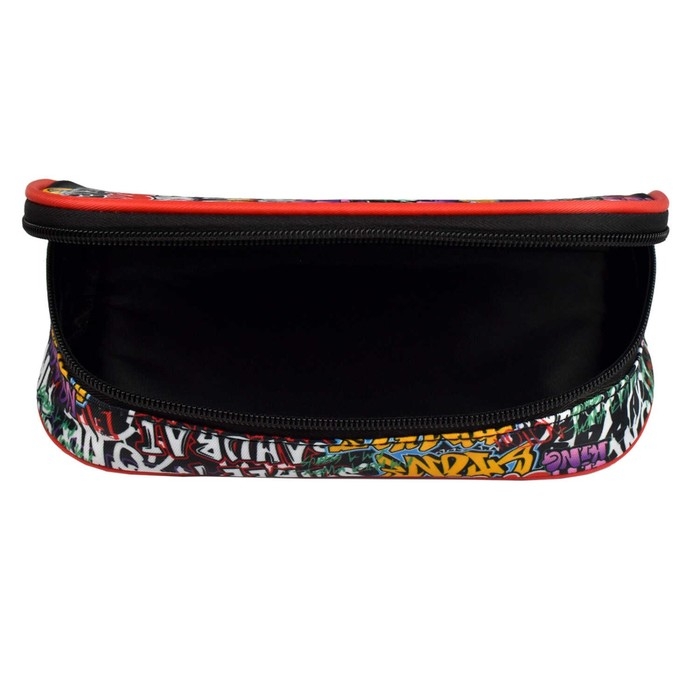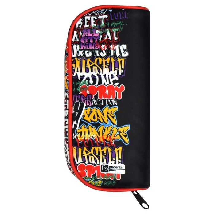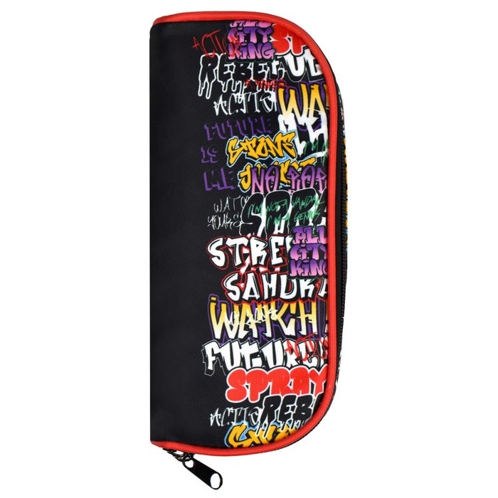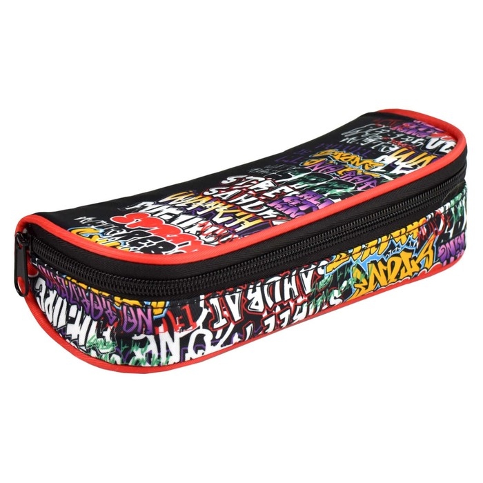 Пенал мягкий, 1 отделение, 90 х 205 х 55 мм, объёмный, Феникс "Теги" чёрный/красный 65704