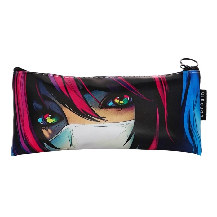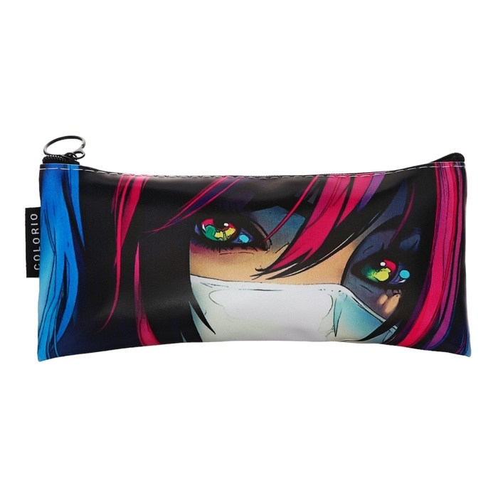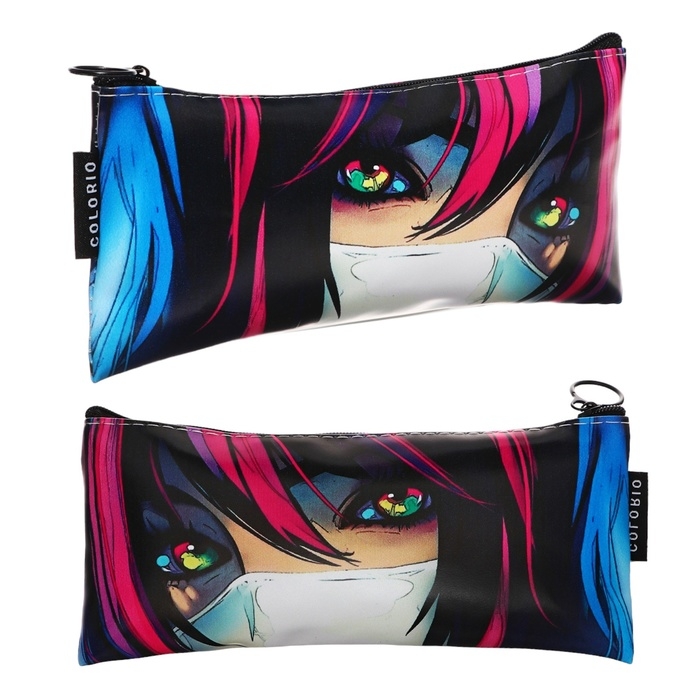 Пенал мягкий 1 отделение, 90х200, плоский, искусственная кожа, универсальный, фиолетовый, Colorio "Аниме глаза"