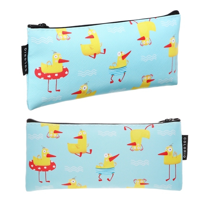 Пенал мягкий 1 отделение, 90х200, плоский, искусственная кожа, универсальный, голубой, Colorio
