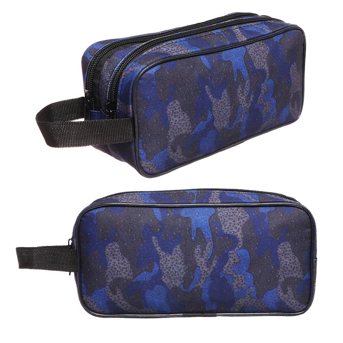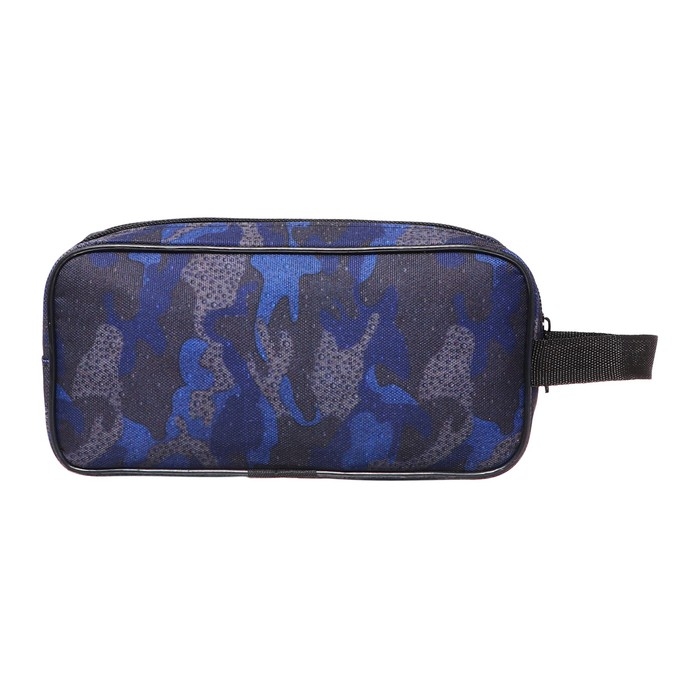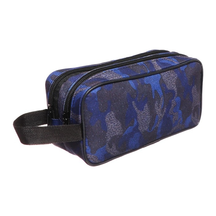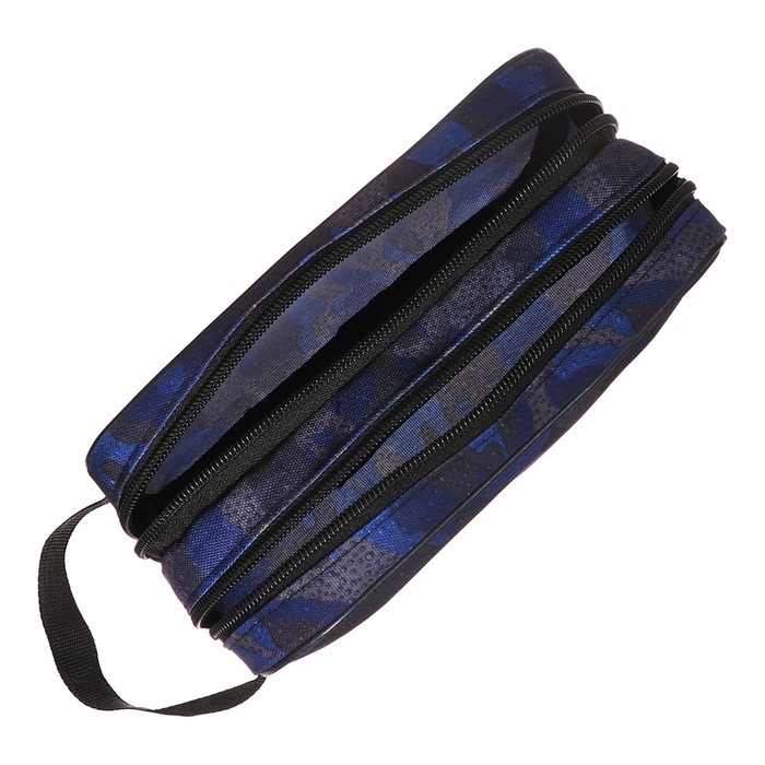 Пенал мягкий 2 отделения, 100 х 220 х 70 мм, объёмный, с ручкой,Calligrata, "Миллитари" сине-серый