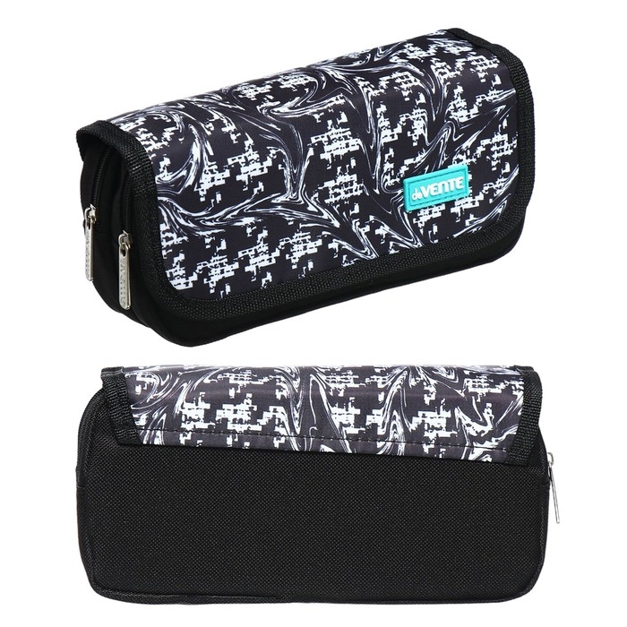 Пенал "deVENTE. Limited Edition. Vogue" 20,5x9,5x7 см, плотная ткань twill, прямоугольный для 60 предметов, 2 отделения на молнии, наружный карман на молнии, с верхней створкой на липучке, текстильный, аппликация из каучука