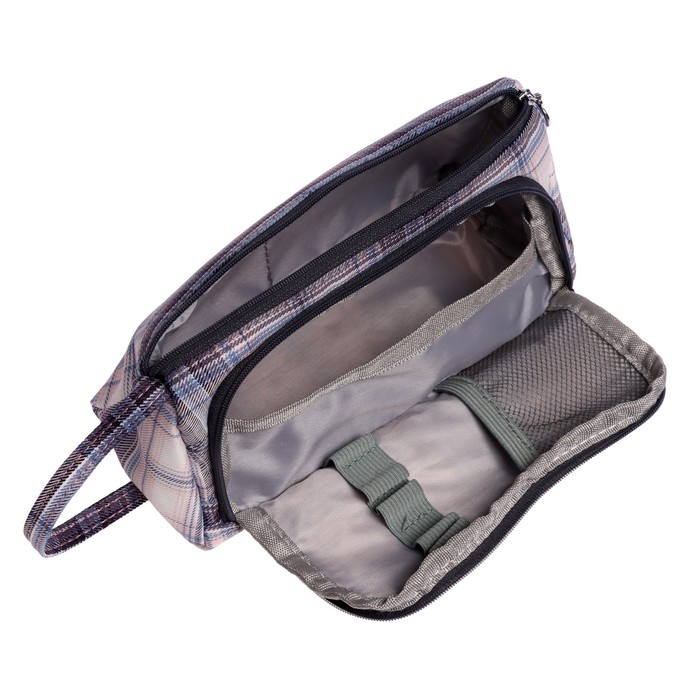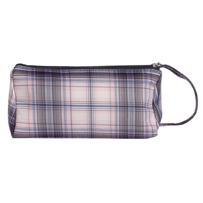 Пенал мягкий 2 отделения, 95 х 210 х 90 мм, объёмный с откидной планкой, с ручкой, Calligrata, "Шотландка", серо-розовая