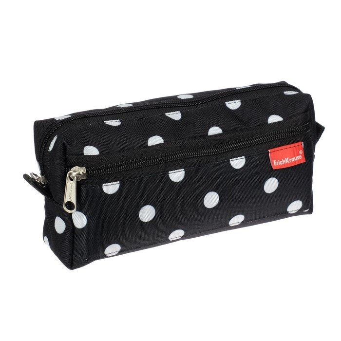 Пенал мягкий, 2 отделения, объёмный, 100 х 210 х 50 мм, Erich Krause, Dots in Black 52286