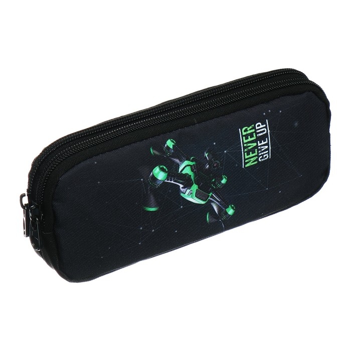 Пенал мягкий, 2 отделения, объёмный, 90 х 220 х 40 мм, Stavia "Дрон" чёрный/зелёный 86242