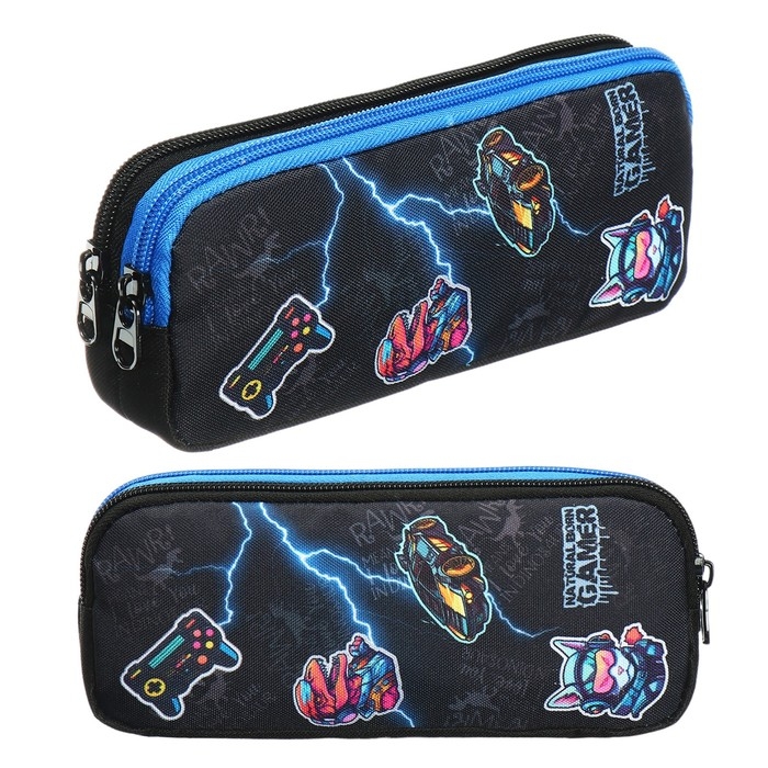 Пенал мягкий, 2 отделения, объёмный, 90 х 220 х 40 мм, Stavia "Gamer" чёрный 86231