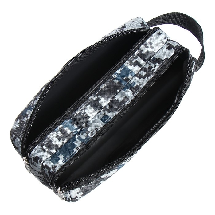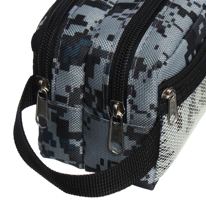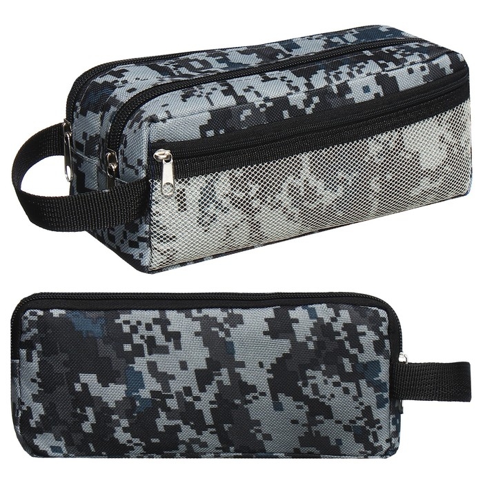 Пенал мягкий 3 отделения, 90 х 215 х 80 мм, объёмный, с ручкой,Calligrata, "Миллитари" серый