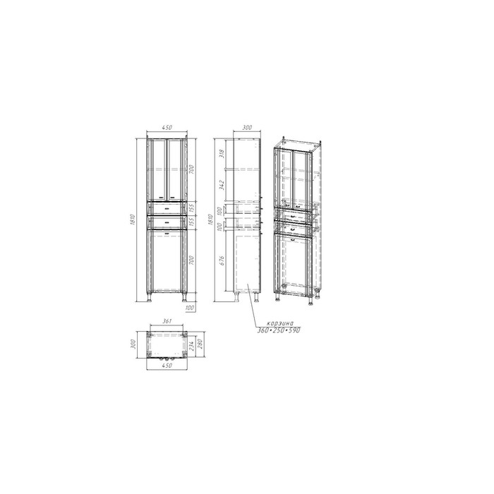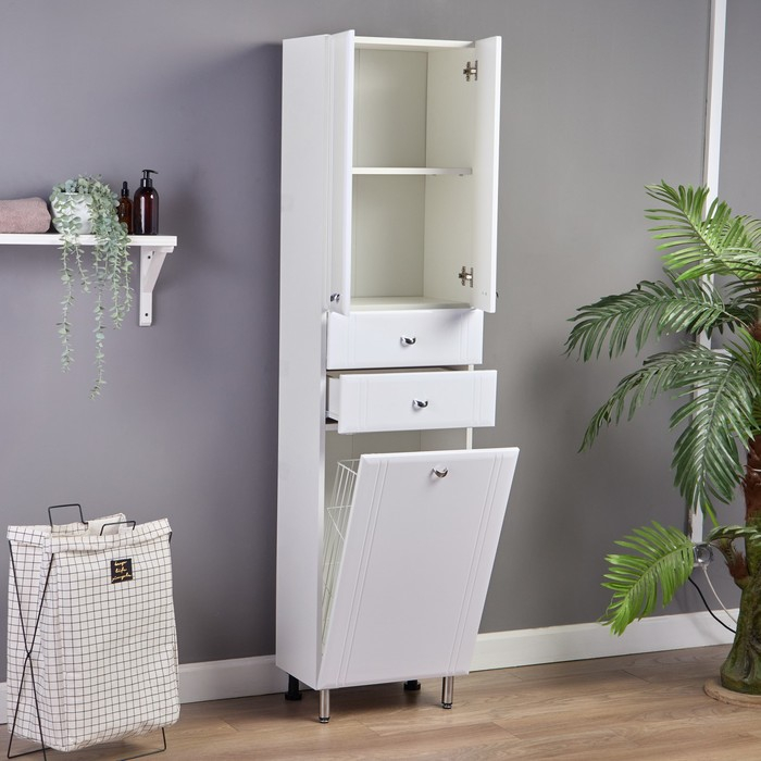 Пенал на ножках для ванной комнаты «Тура» с корзиной, 30х45х181 см