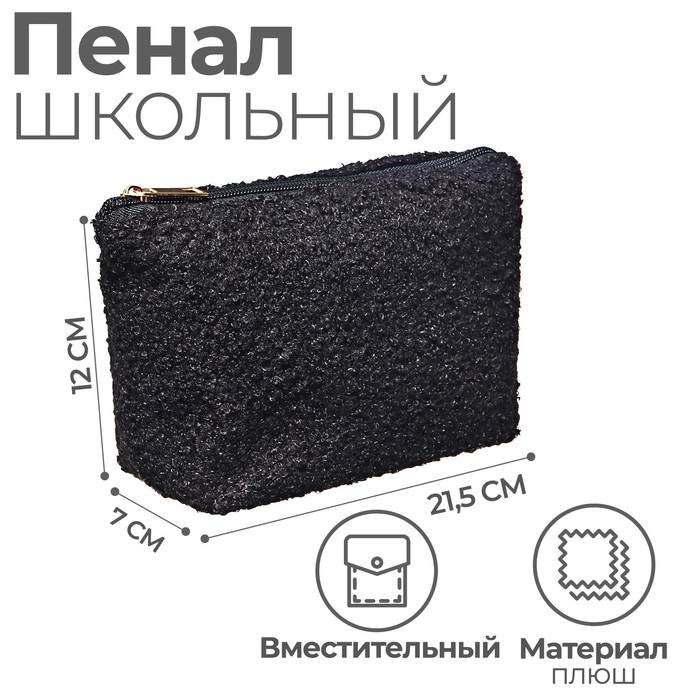 Пенал плюшевый, мягкий Calligrata , 125х215х70, 1 отделение, черный