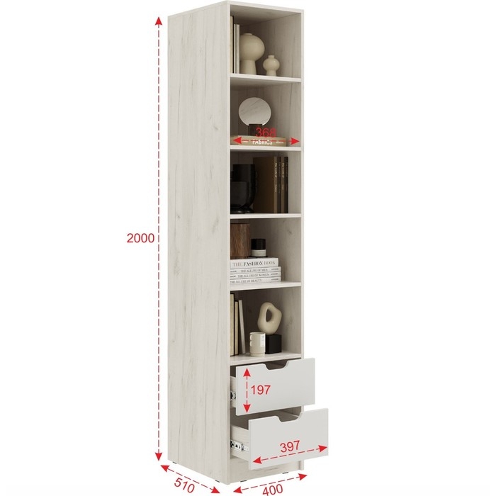 Пенал с ящиком "Юниор-4" - это функциональное и стильное решение для вашей спальни, гостиной или рабочей комнаты. С его размерами 400 мм в ширину, 510 мм в глубину и 2000 мм в высоту, он предоставляет достаточно места для хранения различных предметов и организации пространства.