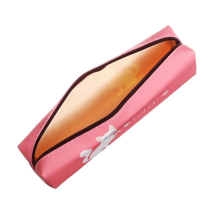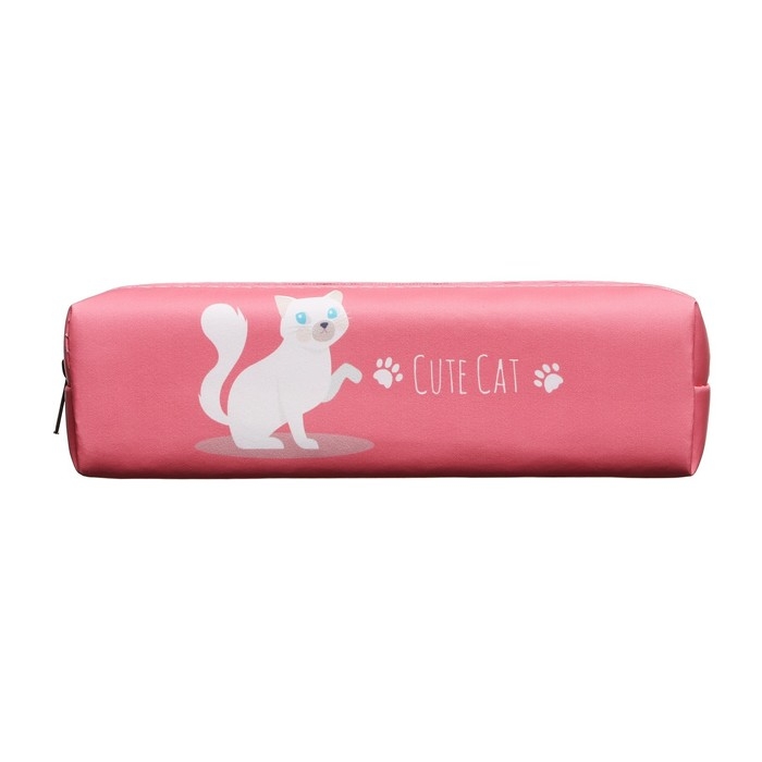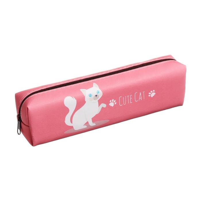 Пенал школьный "Кот" на молнии, розовый
